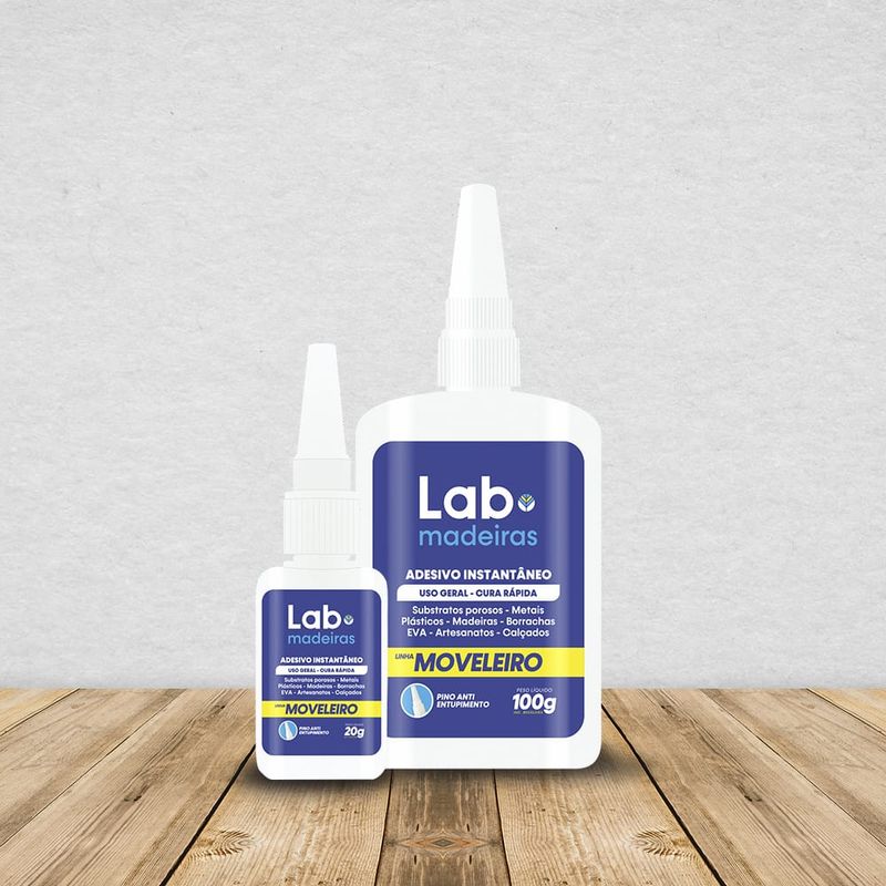 Adesivo Instantâneo para madeira, com 100gr mdf e materiais parecidos. O adesivo/cola da LAB garante isso: colar para valer! Adesivo multiuso muito utilizado no setor moveleiro e no setor industrial. ...