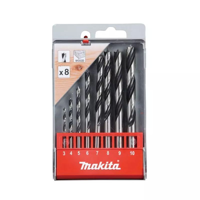 Kit de Brocas para Madeira de 3 Pontas com 8 Peças 3 a 10mm D-57227 Makita. Utilizada em todo o tipo de madeiras: Duras, macias, compensados, fórmicas, aglomerados, etc. - Marca: Makita - Referê...