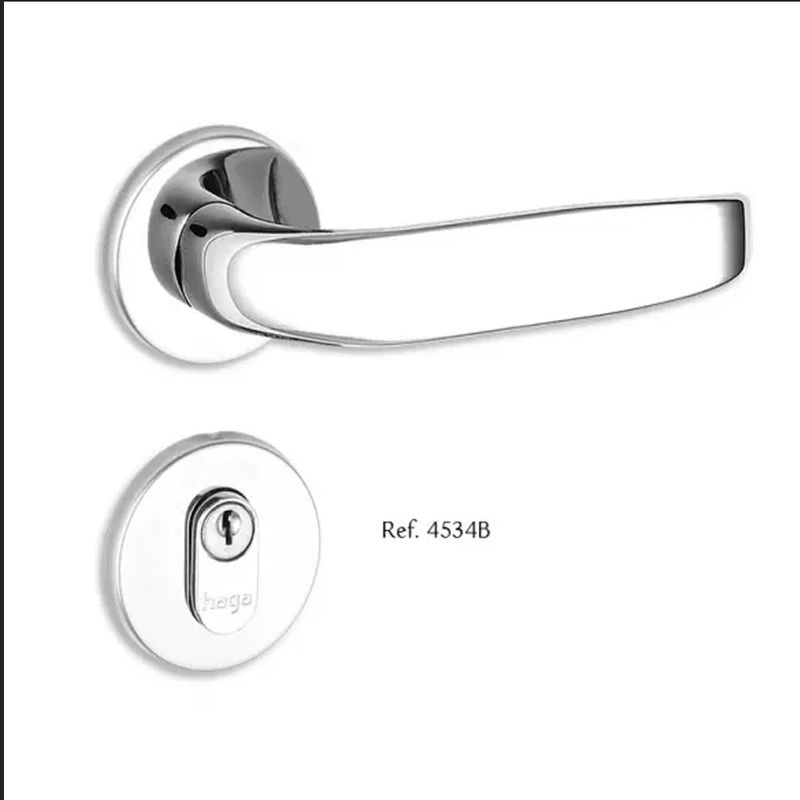 Fechadura com design de linhas retas e com desenho diferencial na maçaneta.