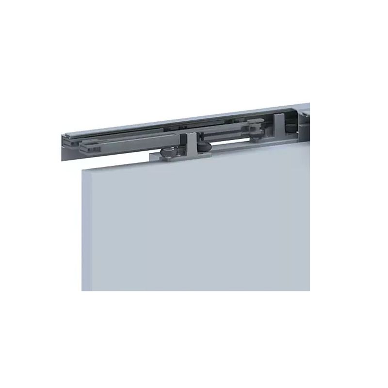 Conjunto de guia e sistema de amortecimento que proporciona um fechamento de porta mais leve e suave, além de trazer um sistema de antidescarrilamento, dando mais segurança para suas portas.